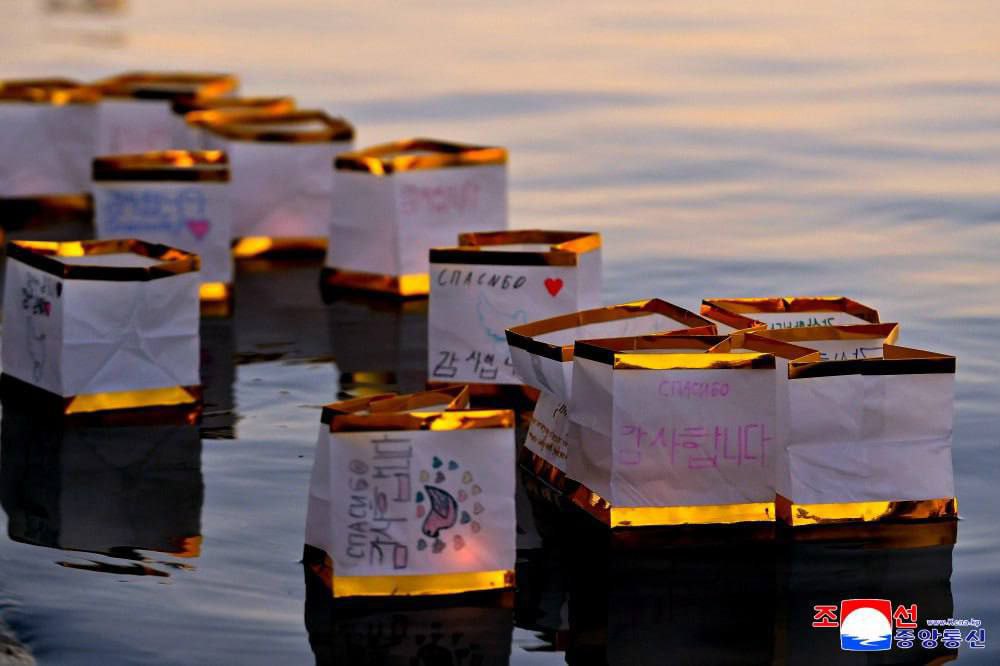 Церемония спуска на воду бумажных фонариков дружбы состоялась при участии учеников школы при посольстве России в КНДР.