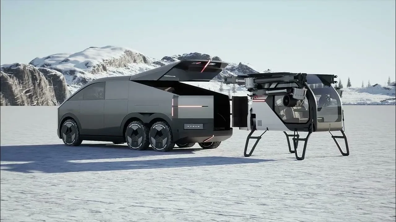 Воздушная капсула, которую таскает этот фургон, – это, по сути, дрон с кабиной на двоих, классным обзором из панорамных окон и возможностью ручного управления. Модуль легко отстыковывается от машины одним нажатием кнопки.